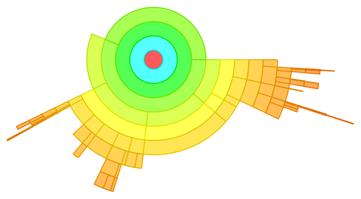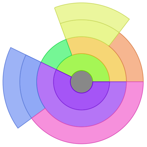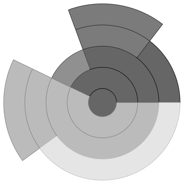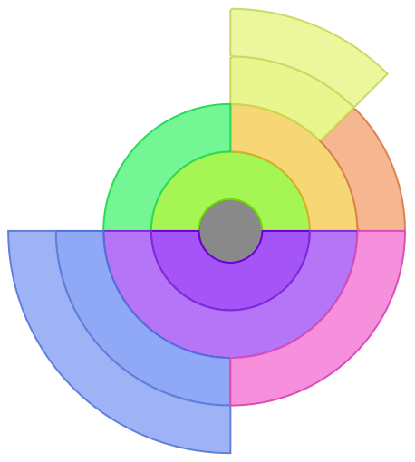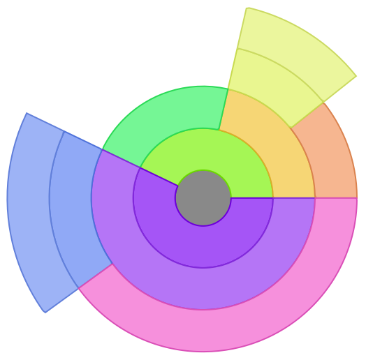ResourceFunction["SectorTreePlot"][tree] plots the data in tree stacking child sectors radially. |