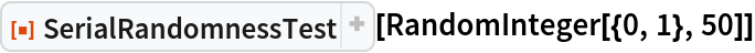 ResourceFunction["SerialRandomnessTest"][sequence,"properties"] conducts an empirically derived test and returns the specified property. |