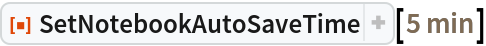ResourceFunction["SetNotebookAutoSaveTime"][] sets the EvaluationNotebook to auto-save every 60 seconds. | |