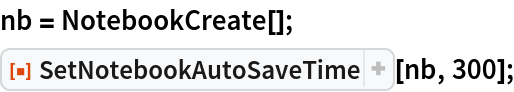 ResourceFunction["SetNotebookAutoSaveTime"][nb,n] auto-saves the Notebook nb. | |