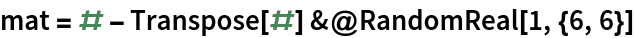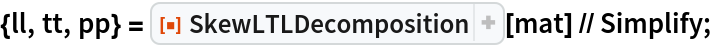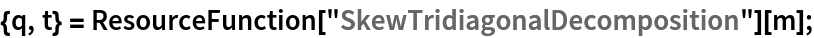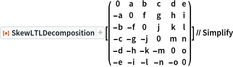 ResourceFunction["SkewLTLDecomposition"][m] gives the Parlett–Reid decomposition of the skew-symmetric matrix m. |