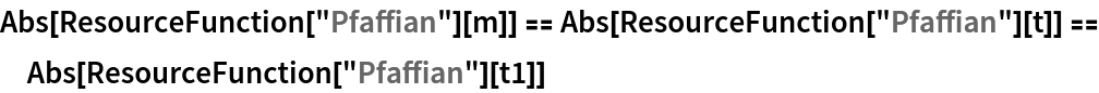 The resource function SkewTridiagonalDecomposition also produces a tridiagonal matrix t with the same Pfaffian, possibly up to the sign: