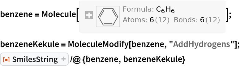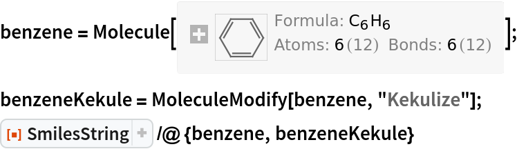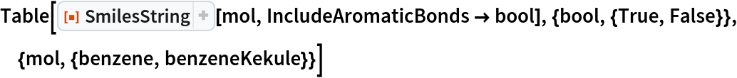 With the default setting of IncludeAromaticBonds→Automatic, aromaticity in the SMILES string reflects the aromaticity in the Molecule expression: