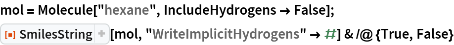Implicit hydrogens are not included in a SMILES string when their presence can be inferred from normal valence rules. Use "WriteImplicitHydrogens"→True to write all implicit hydrogens: