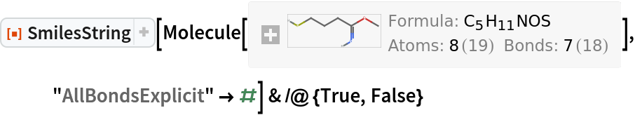 By default, single bonds are omitted from the string. Use the "AllBondsExplicit" option to control this: