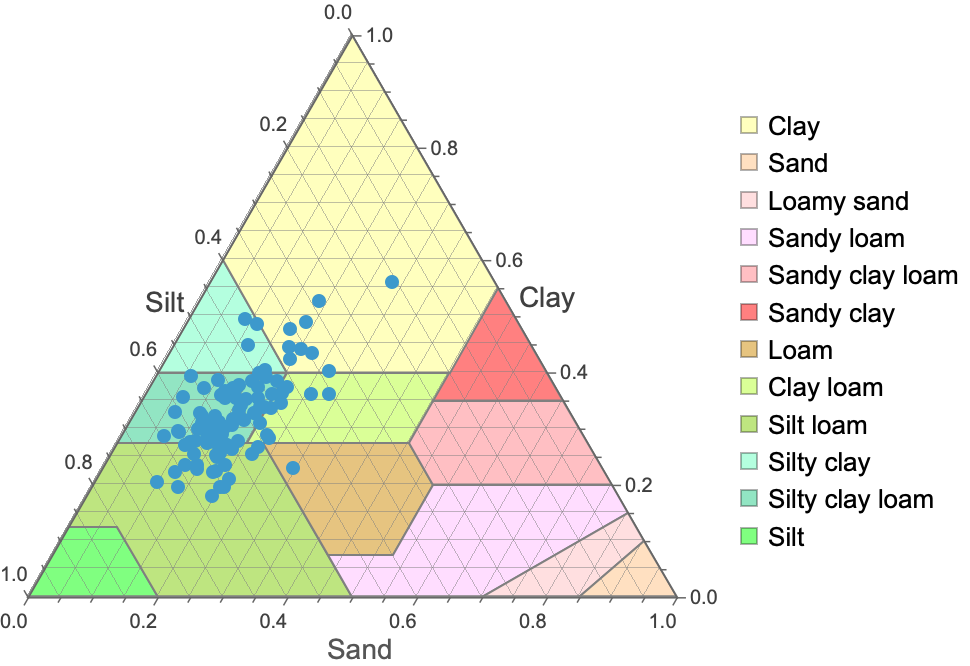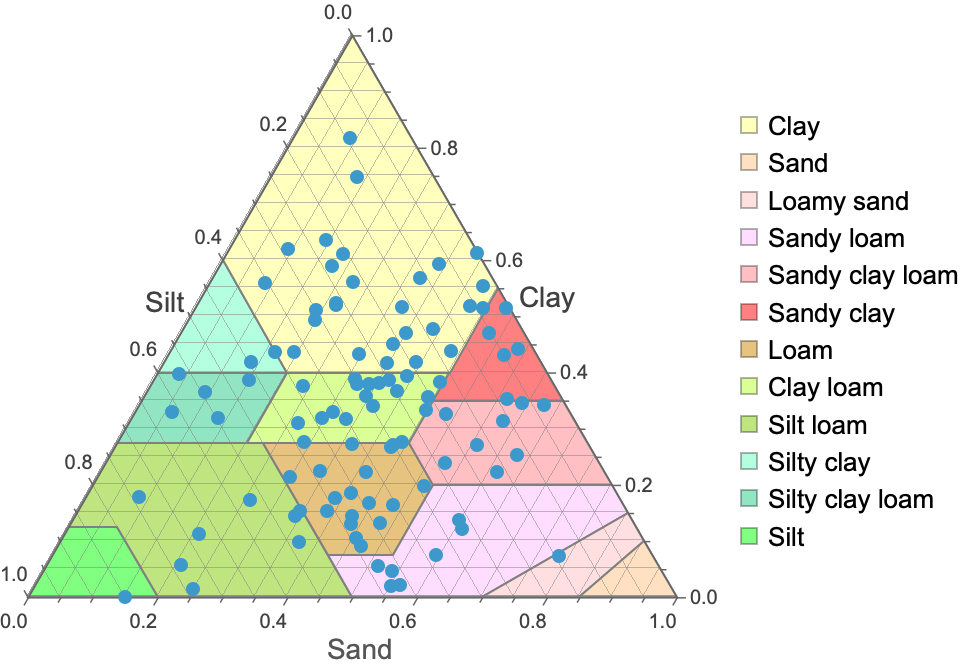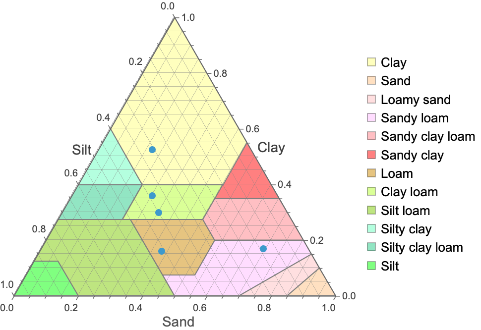 Overlay soil samples on the soil texture diagram: