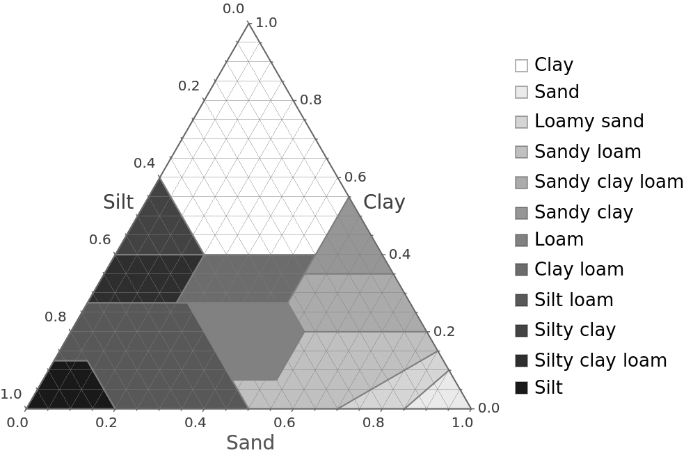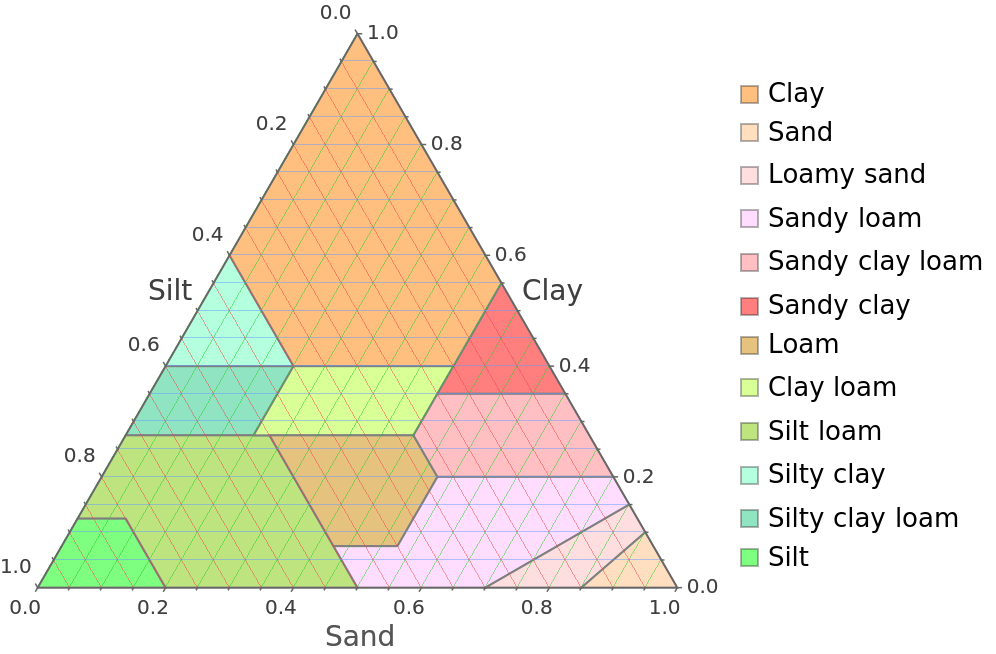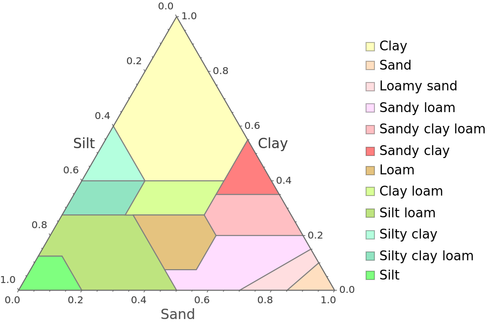 ResourceFunction["SoilTexturePlot"][] plots the standard USDA soil texture diagram. | |