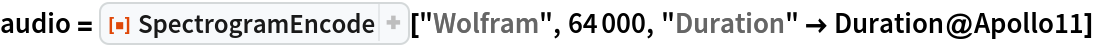 ResourceFunction["SpectrogramEncode"][str] encode the string str within an audio spectrum. | |