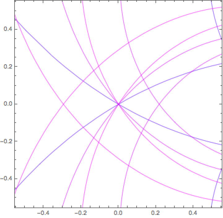 The spirograph curves corresponding to these absolute values all go through the origin:
