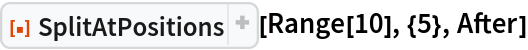 ResourceFunction["SplitAtPositions"][lst,ind,Before] is equivalent to ResourceFunction["SplitAtPositions"][lst,ind]. |