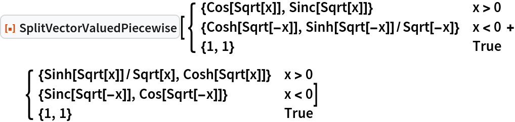 ResourceFunction["SplitVectorValuedPiecewise"][expr] converts any vector-valued piecewise functions in expr to a list of piecewise functions. |