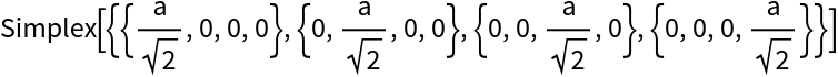 ResourceFunction["StandardSimplex"][n,len] gives the standard n-simplex with edge lengths of len. | |