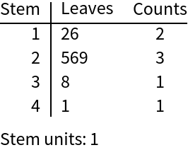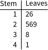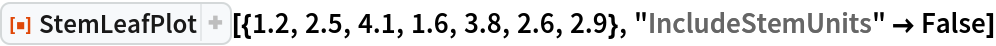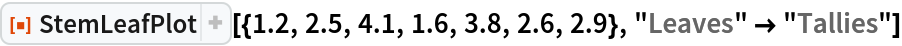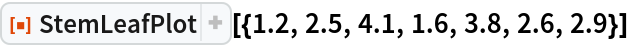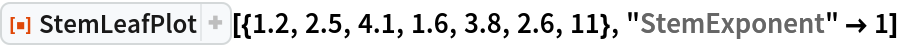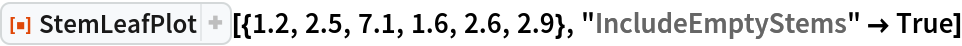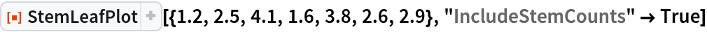 ResourceFunction["StemLeafPlot"][data] creates a stem-and-leaf plot for the real-valued vector data. | |