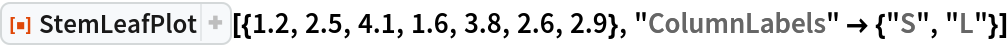 StemLeafPlot with stem and leaf columns labeled with "S" and "L":