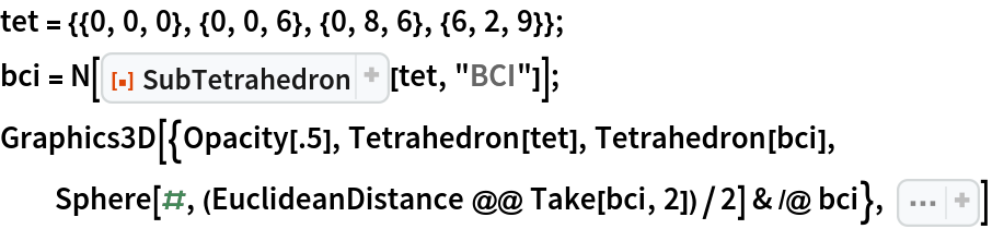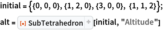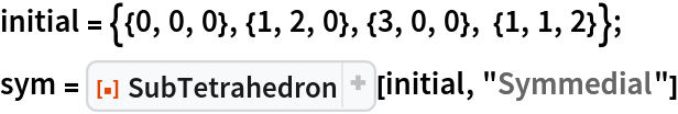 ResourceFunction["SubTetrahedron"][tetra, "special"] returns the tetrahedron identified by "special" from the tetrahedron tetra. |
