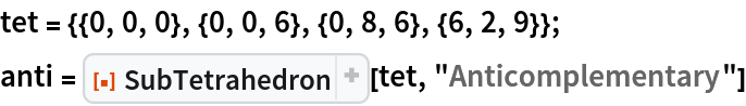 | "Anticomplementary" | tetrahedron with ABCD as medial tetrahedron |