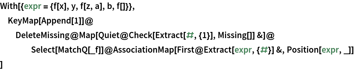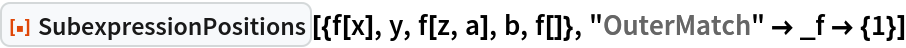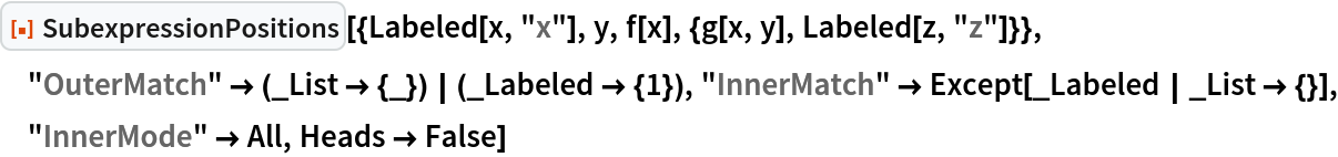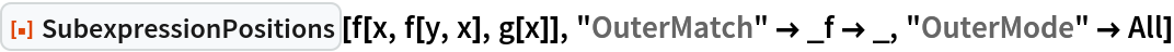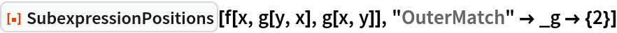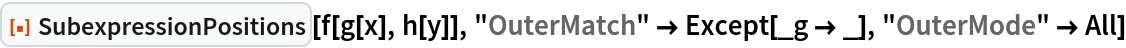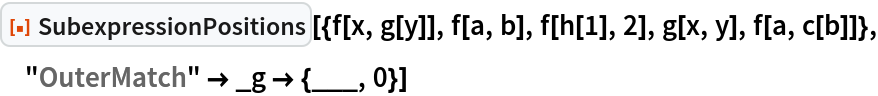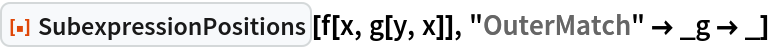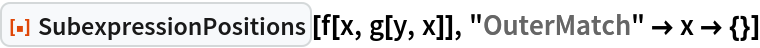 Find subexpressions with all outer expressions matching a given pattern. The {1, 1} position corresponding to x is not present due to having an outer expression matching _g: