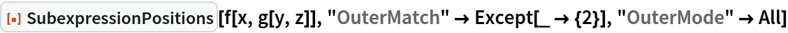 Find subexpressions matching outer expression with relative position. Positions {2} and {2,2} corresponding to g[y,z] and z are not present because they both have relative position {2}: