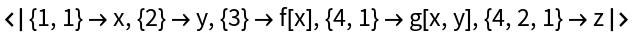 Find subexpressions having all inner expressions matching any but given pattern and relative position. Position {2} corresponding to g[y,z] is not present because it has inner expression matching y at relative position {1}: