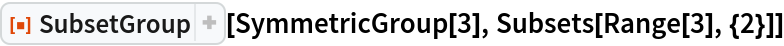 ResourceFunction["SubsetGroup"][g,s] returns the group induced by a group g of n-permutations acting on the set s of k-subsets of {1,…n}. | |