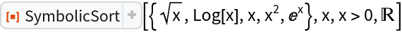 ResourceFunction["SymbolicSort"][list,vars,assum,dom] carries out symbolic manipulations over the domain dom. | |