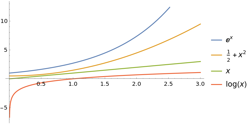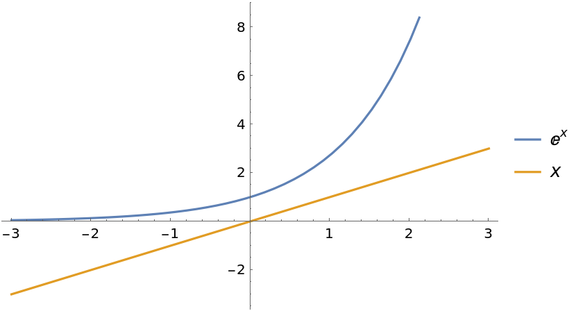 Plot to illustrate that Exp[x] is always greater than x: