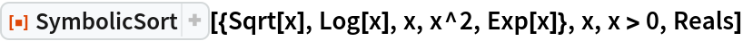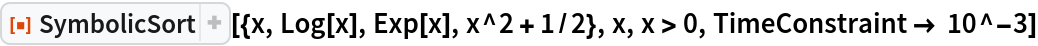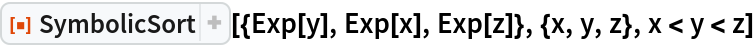 ResourceFunction["SymbolicSort"][list,vars] attempts to sort list by assuming that the variables vars are real-valued. | |