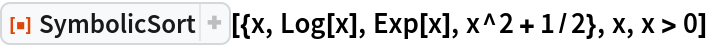ResourceFunction["SymbolicSort"][list,vars,assum] sorts by assuming that vars satisfy assumptions assum. | |