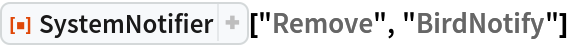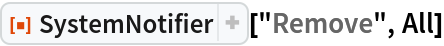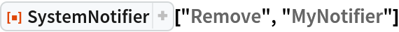 ResourceFunction["SystemNotifier"]["Remove","name"] removes the ResourceFunction["SystemNotifier"] object with the given "name". | |