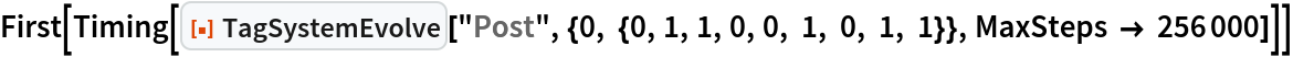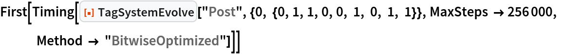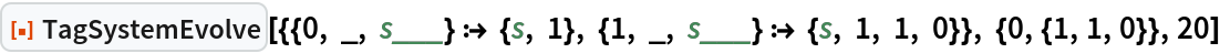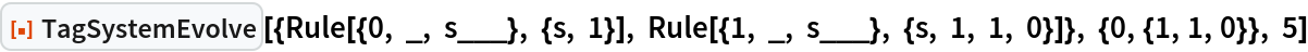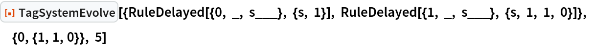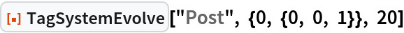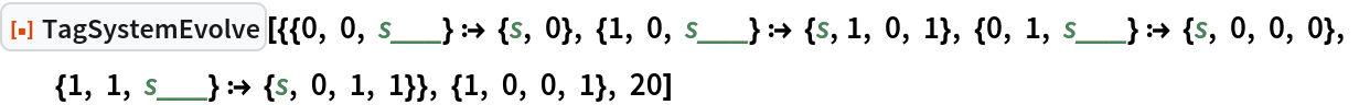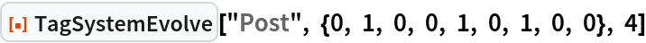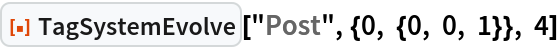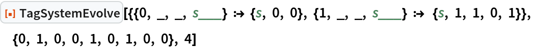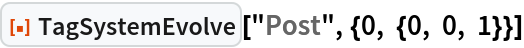 As a special case, the Post tag system can be specified by setting the argument rules to "Post". This is equivalent to giving rules as {{0,_,_,s___}→{s,0,0},{1,_,_,s___}→ {s,1,1,0,1}}.