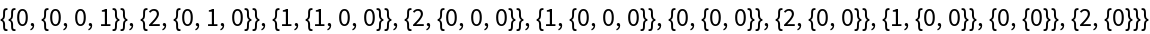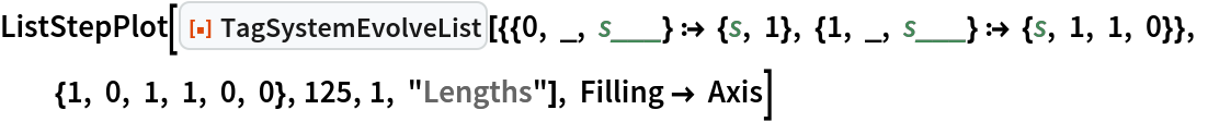 Note that if the number of evolution steps specified is longer than the evolution to the fixed point of the tag system, only the states up to and including the fixed point will be returned: