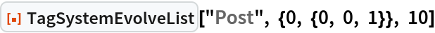 Evolve the Post tag system from the same initial condition specified in compressed form, for 8 steps: