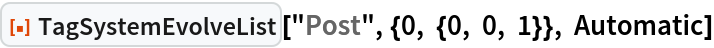 Evolve the Post tag system until it halts, using the Automatic setting for evolution steps: