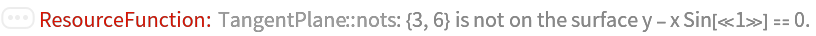 Requesting tangent plane information about a point that is not on the surface will result in an error message: