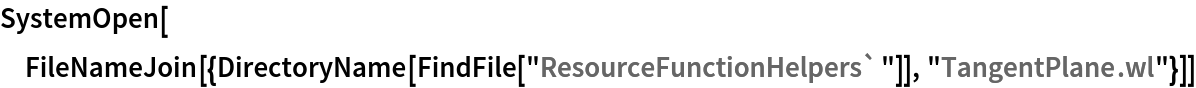 ResourceFunction["TangentPlane"][…,prop] returns the value of the tangent plane property prop. |