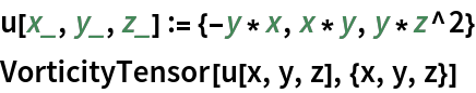 Define a simple function to compute the vorticity tensor given a velocity field at the point :