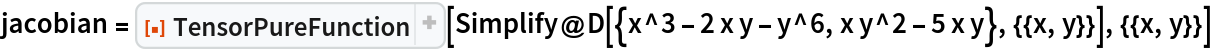 Use TensorPureFunction with the resource function JacobianMatrix: