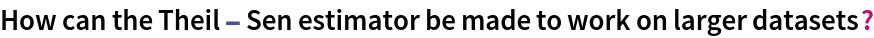 ResourceFunction["TheilSenLine"][xlist,ylist] uses the Theil–Sen estimator to fit a line through a set of points, where xlist and ylist respectively give the x and y coordinates of the points. | |