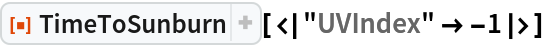 TimeToSunburn returns Missing["NotApplicable"] when the time to sunburn exceeds the UV exposure time: