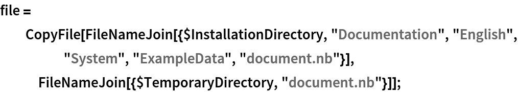 Save a copy of an example notebook to the system's temporary directory and convert the notebook to a slide show prompter: