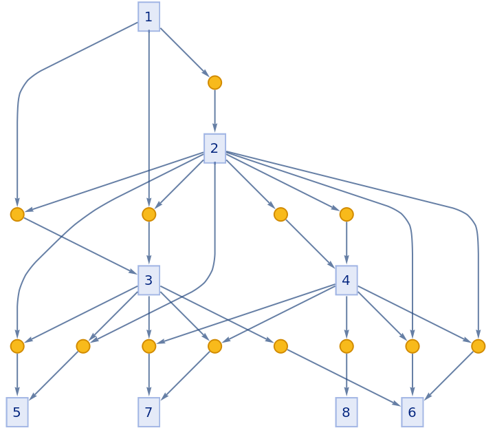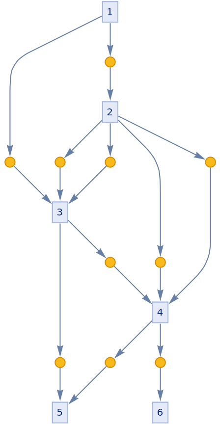 Generate a token-event graph for multicomputational evolution according to particular rules