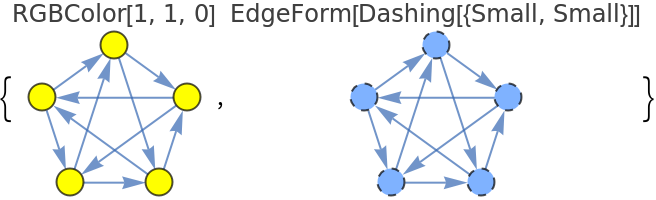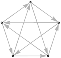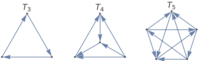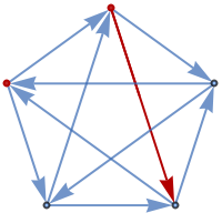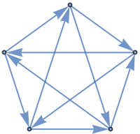 ResourceFunction["TournamentGraph"][n,"Cyclic"] generates a balanced directed tournament on n vertices in which each vertex has nearly the same number of outgoing and incoming edges. | |