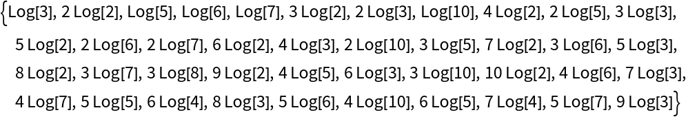 | Log | logarithmic forms bLog[a] |