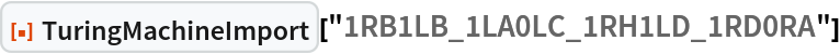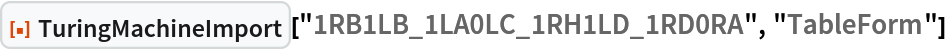 ResourceFunction["TuringMachineImport"][tm,form] return a Turing machine in a specified form. |