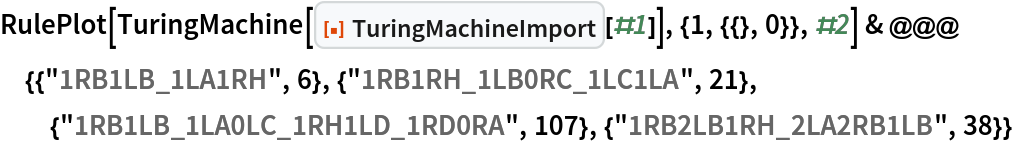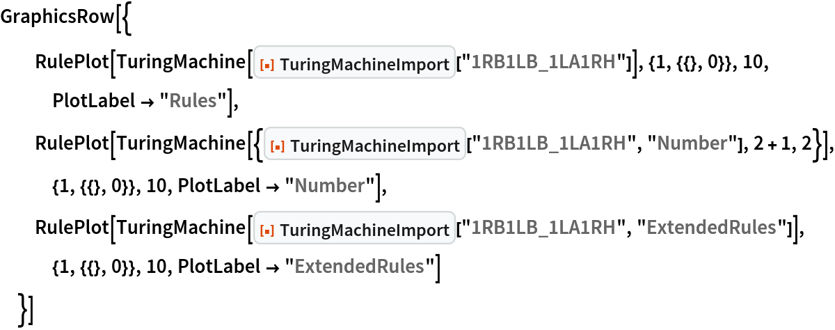 ResourceFunction["TuringMachineImport"][tm] return explicit Turing machine rules. | |