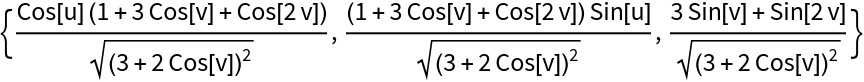 ResourceFunction["UnitNormal"][s,{u,v}] gives the unit normal vector field to the surface s parametrized by variables u,v. |