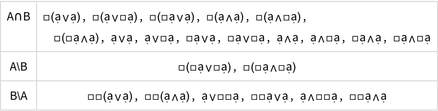 List all possible unary and binary combinations for a chosen set of functions and symbols