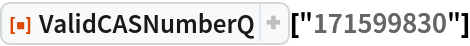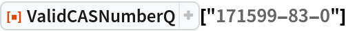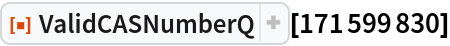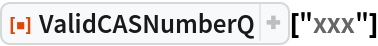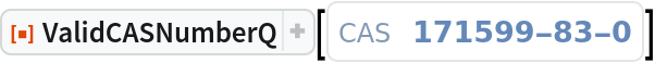 ResourceFunction["ValidCASNumberQ"][s] checks if s is a valid Chemical Abstracts Service (CAS) Registry Number. |