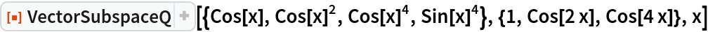 But each of the other functions cos2(x),cos4(x),sin4(x) in the first list is a linear combination of the three functions 1,cos(2x),cos(4x):