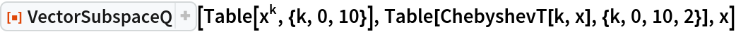 The even Chebyshev polynomials of the first kind of degree at most 10 form a subspace of the space of all polynomials of degree at most 10: